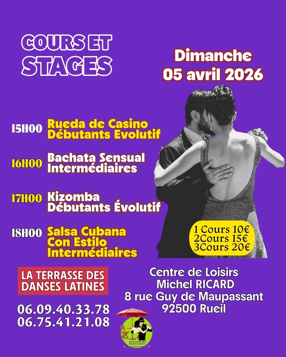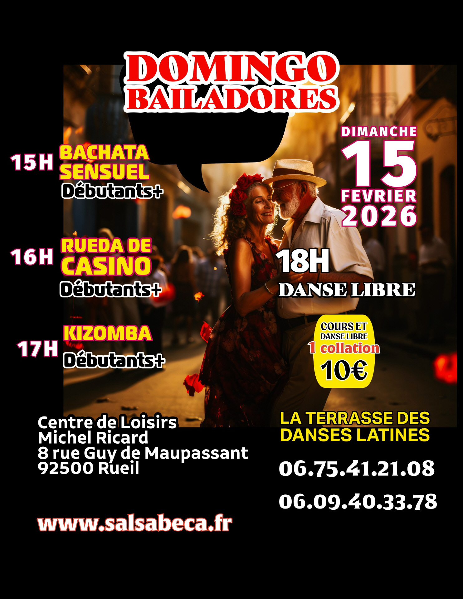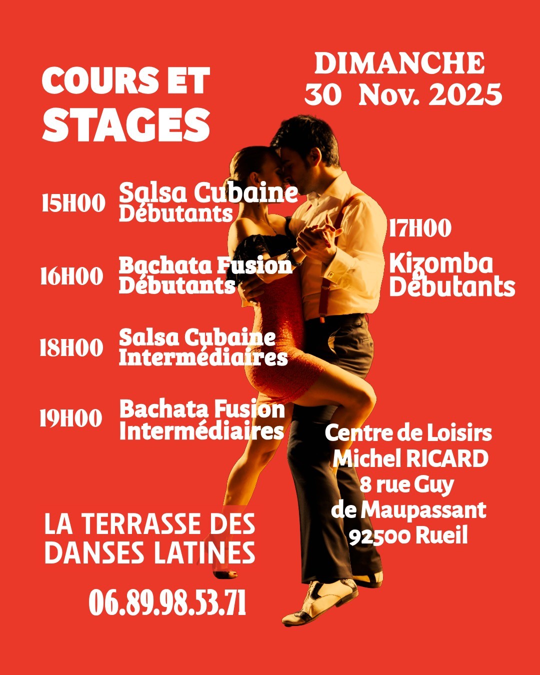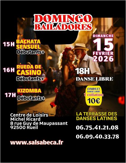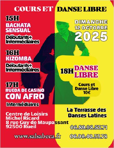 Vous voulez vous amuser le Dimanche après-midi cours et danse libre Salsa Bachata Kizomba Rueil Malmaison